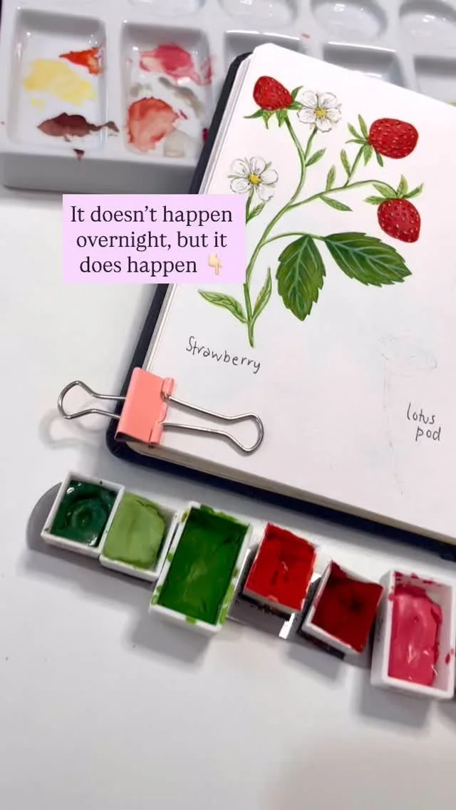Hand drawn and painted illustrations using watercolour and gouache, tiny brushes and attention to details!